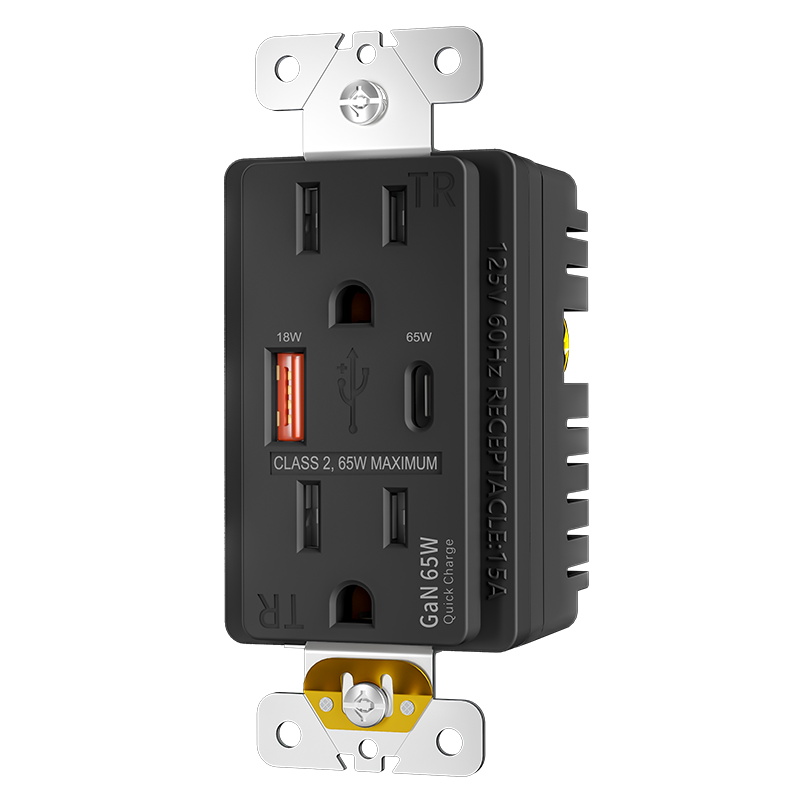 15A Outlet Receptacle, Power Deliver PD65W Fast Charge & Power Delivery USB Type A & Type C Wall Outlet, Tamper Resistant, UL Listed, Wall Plate Included